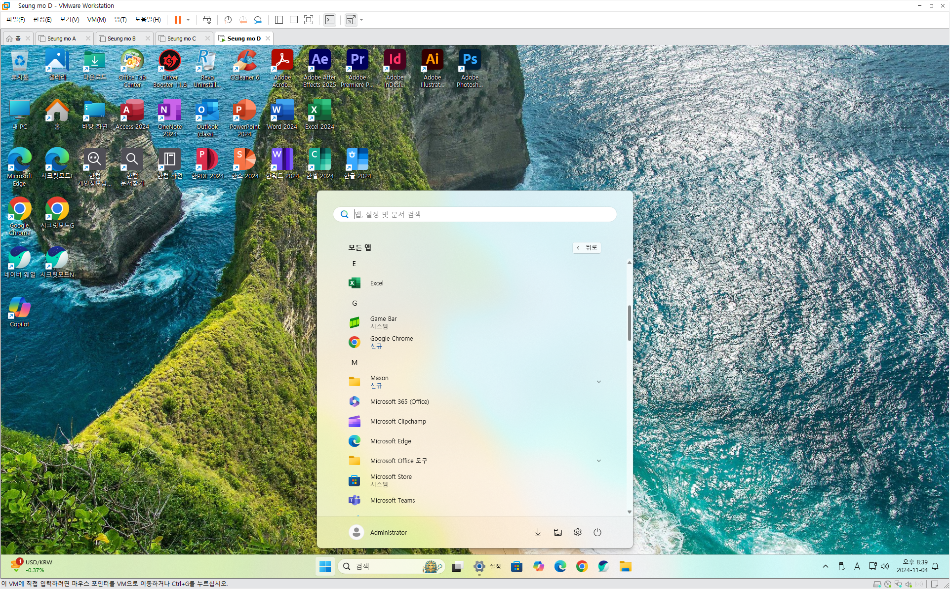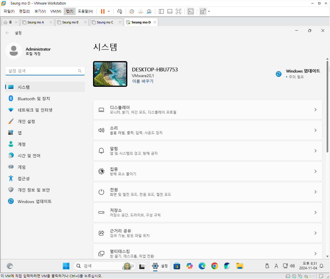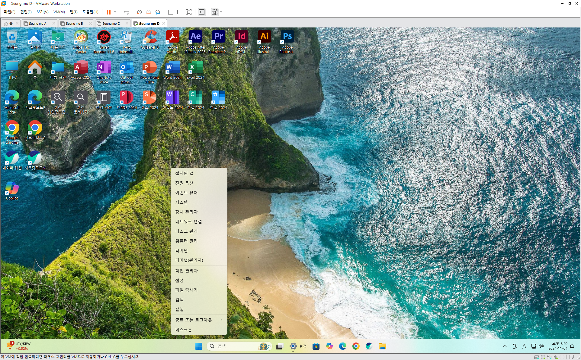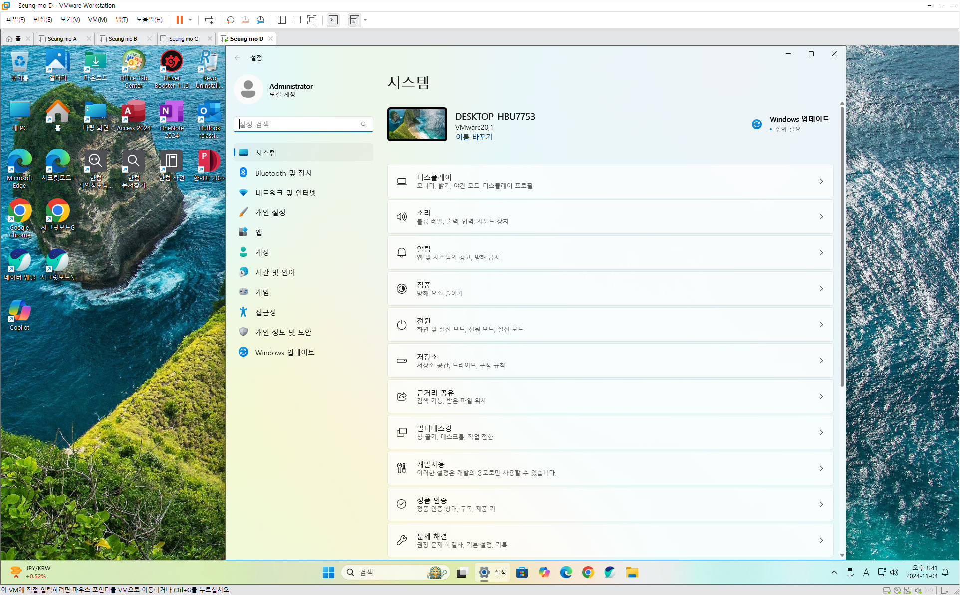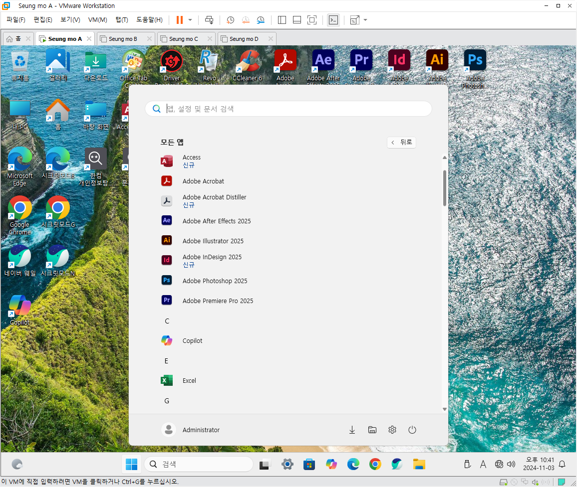 만능 윈도우 11 Enterprise 24H2 7-4번을 VMware 설치 합니다