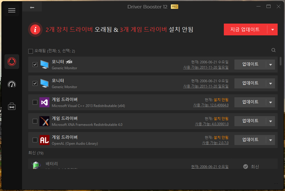 설치가 완료 되면 드라이버 부스터로 장치 드라이버 설치 하세요