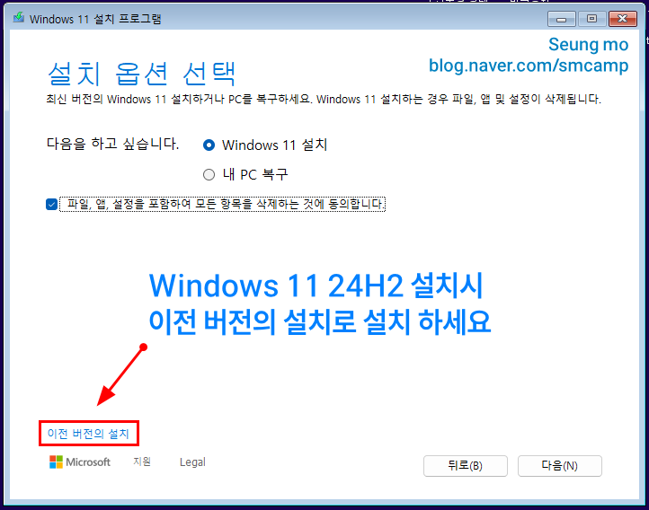 설치 하실때 이전 버전의 설치를 권장 드립니다