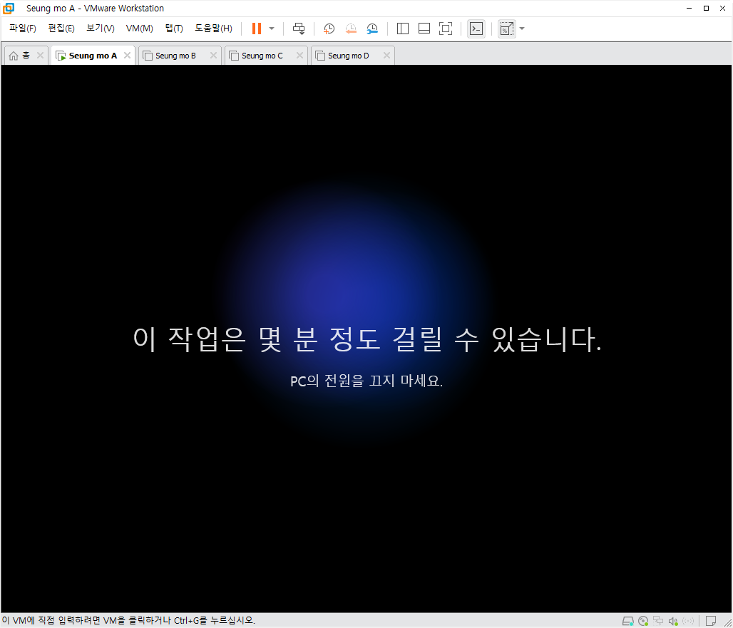 설치중 복사후 첫부팅이 되면 설치가 완료 되고 5분~15분 이내에 설치가 모두 완료 됩니다.