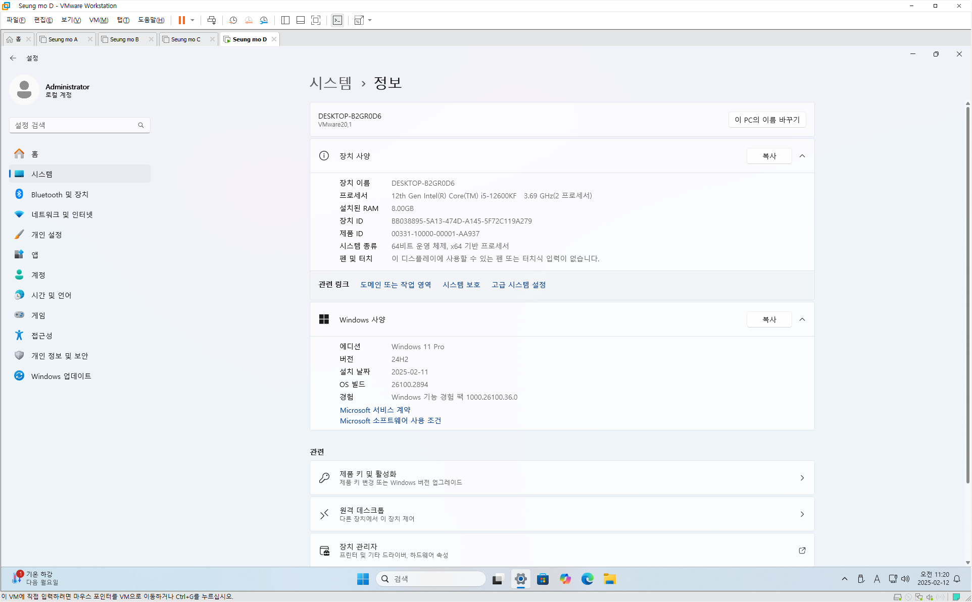 ▦ Windows 11 24H2 26100.2894 제작후 VMware 설치 시작
