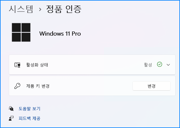 ▦ 윈도우와 소프트웨어는 인증이 활성화 되었습니다.