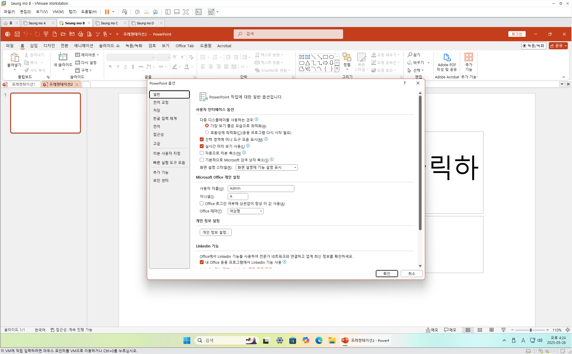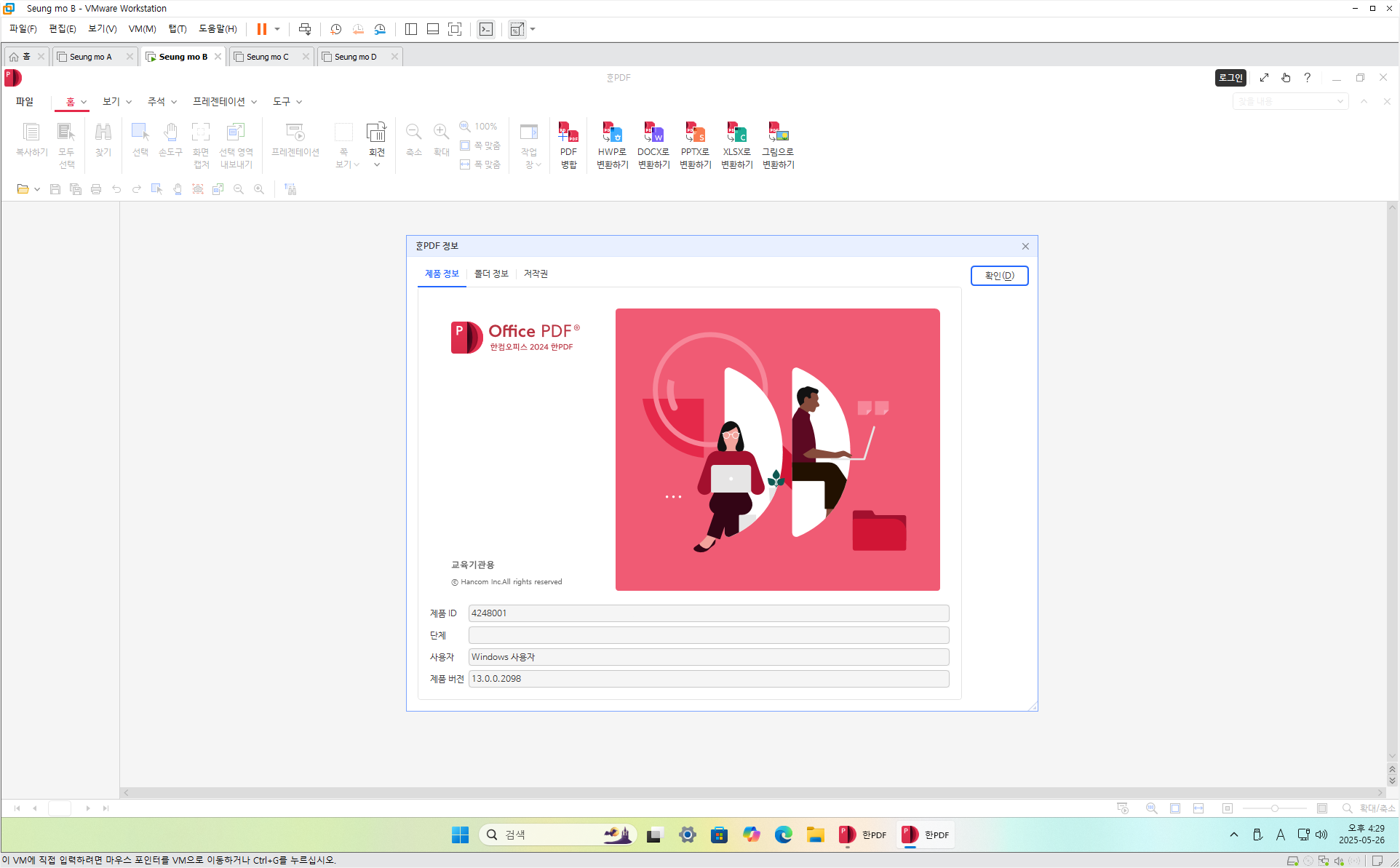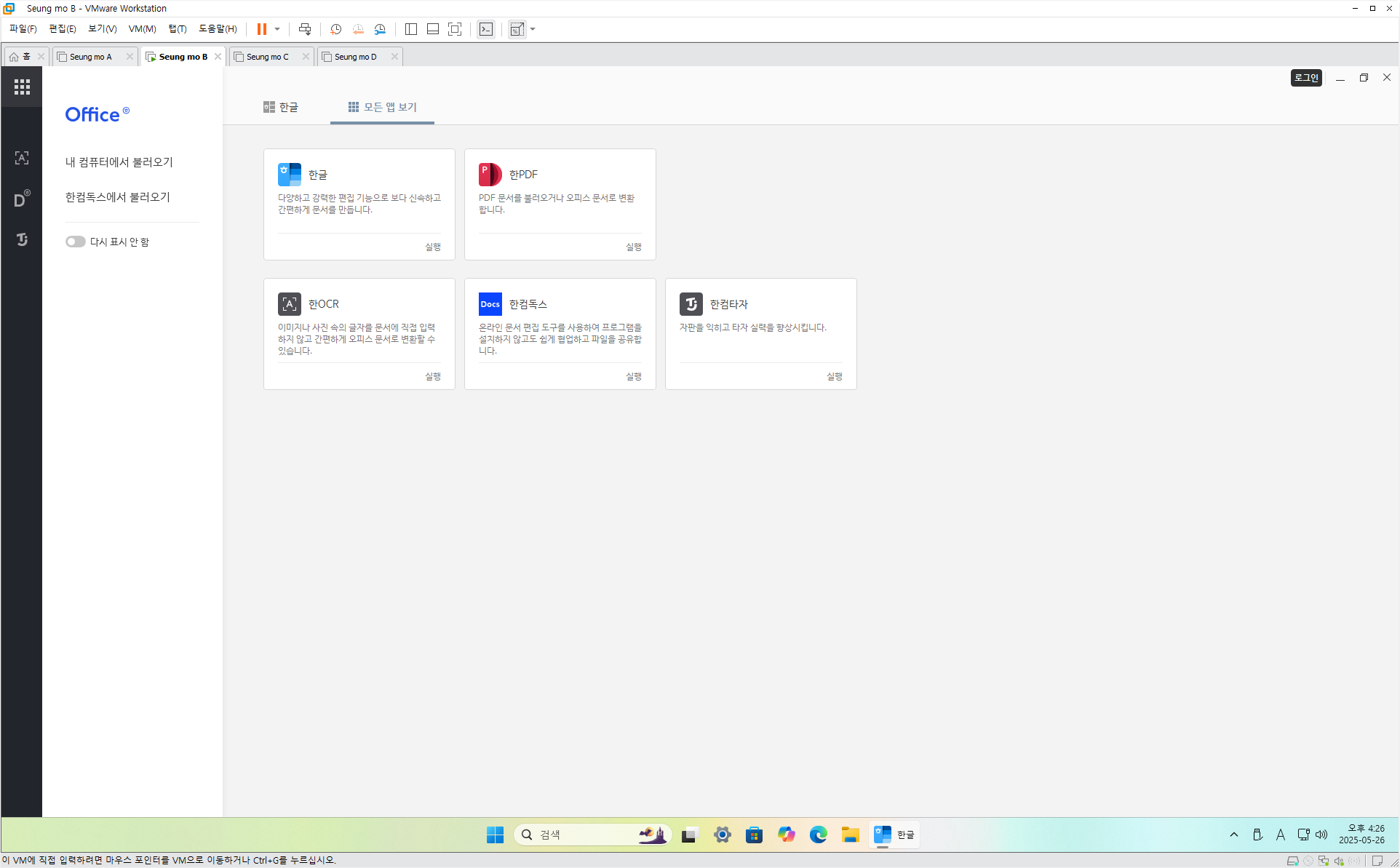 (오피스 설치 구성 : (한글 2024, 한PDF 2024, 한컴 PDF, 기본 클립아트) 4개 설치
