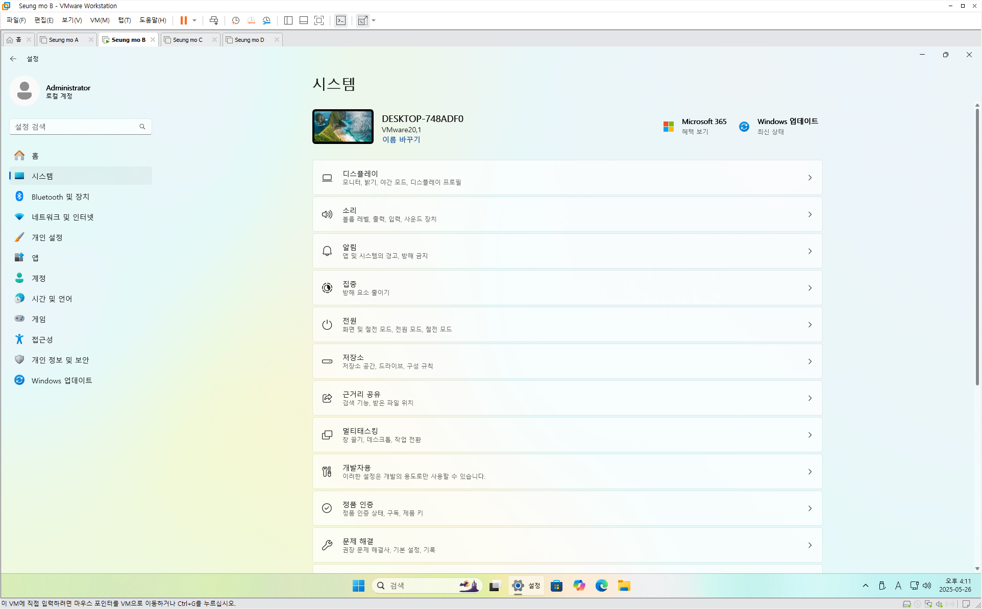 • Windows 11 Pro 24H2, Build 26100.4061 MSDN 05월 정식 버전