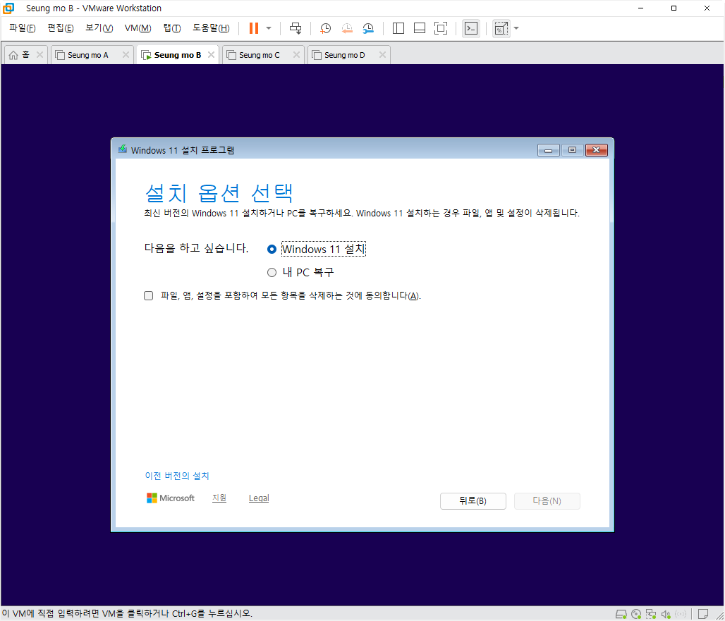 (만능 윈도우 11 제작 완료후 가상머신 VMware 에서 설치 테스트 되었습니다)