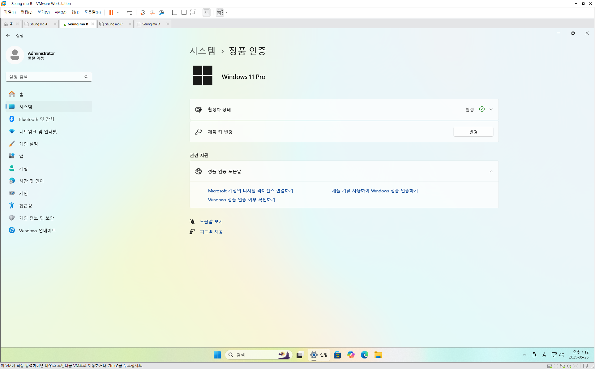▦ 윈도우와 오피스는 인증이 활성화 되었습니다.