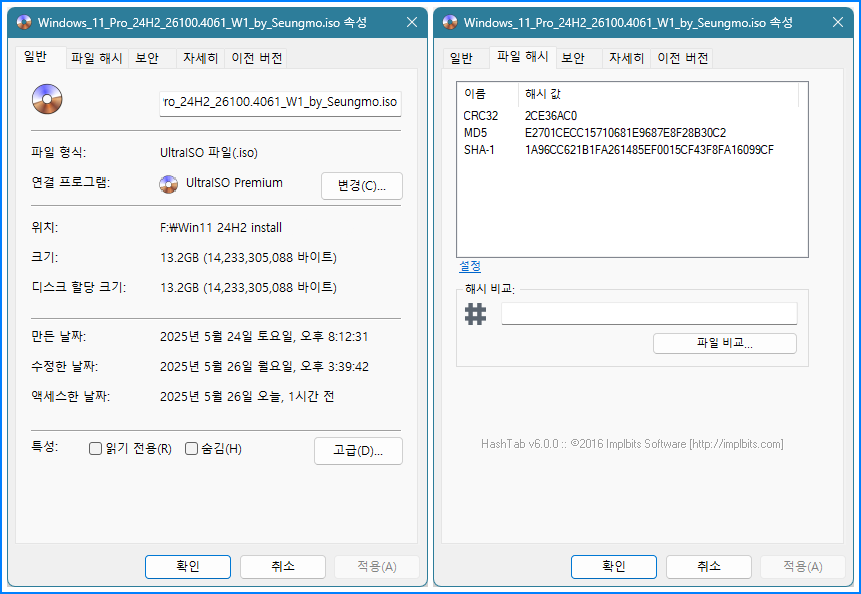 • HashTab 6.0 해시탭 (파일해시값)