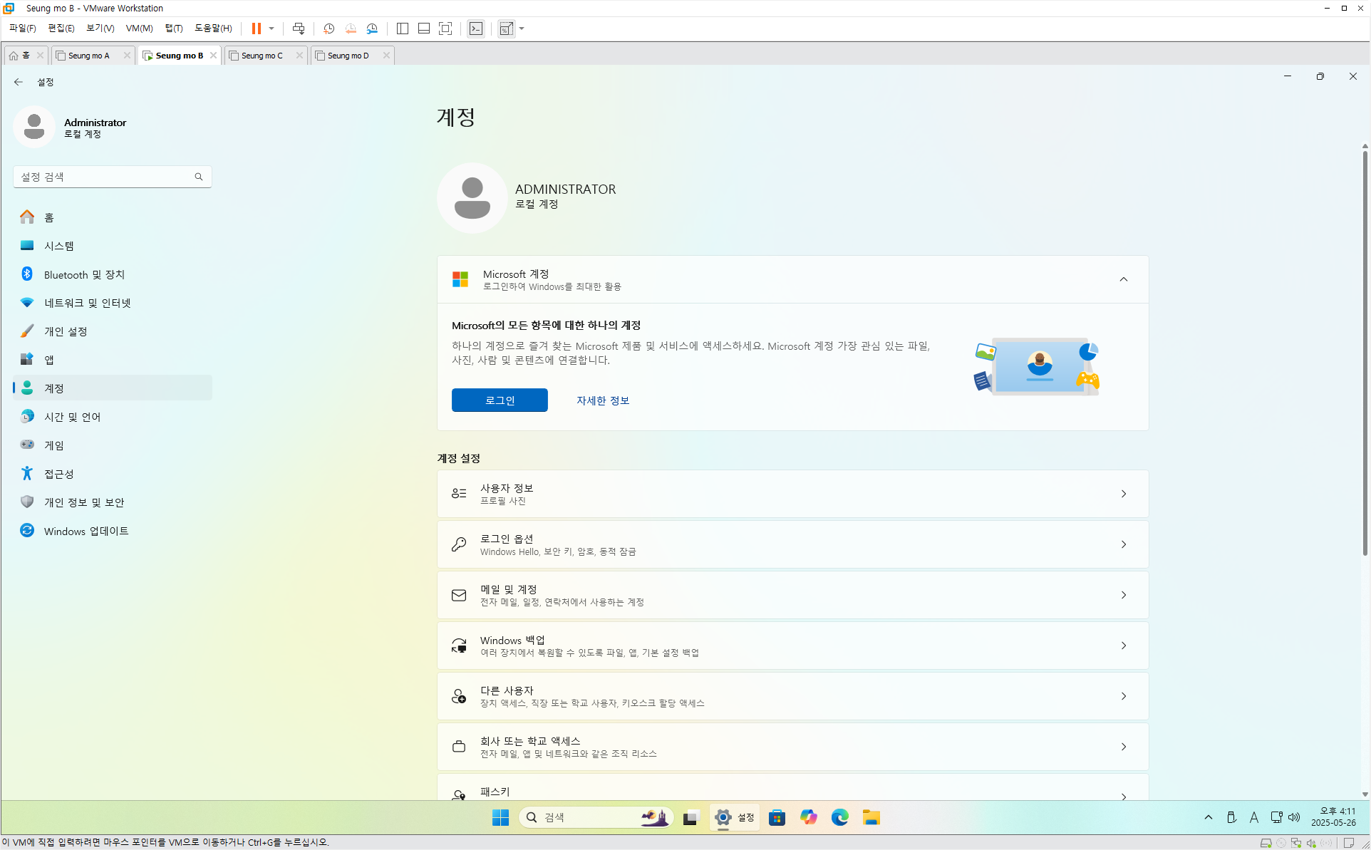 ▦ MS 계정이 아닌 로컬 계정으로 설치 되었습니다.