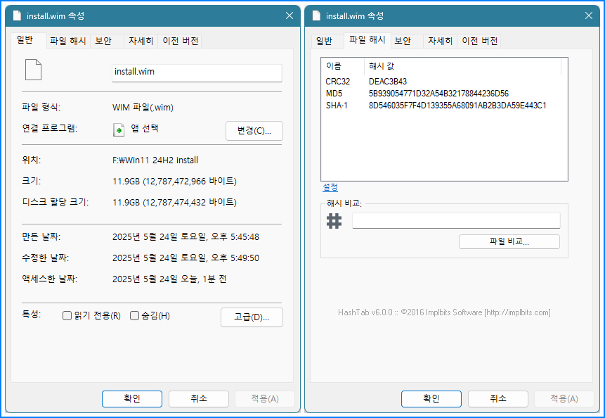 install.wim SHA-1 Hash 해시값